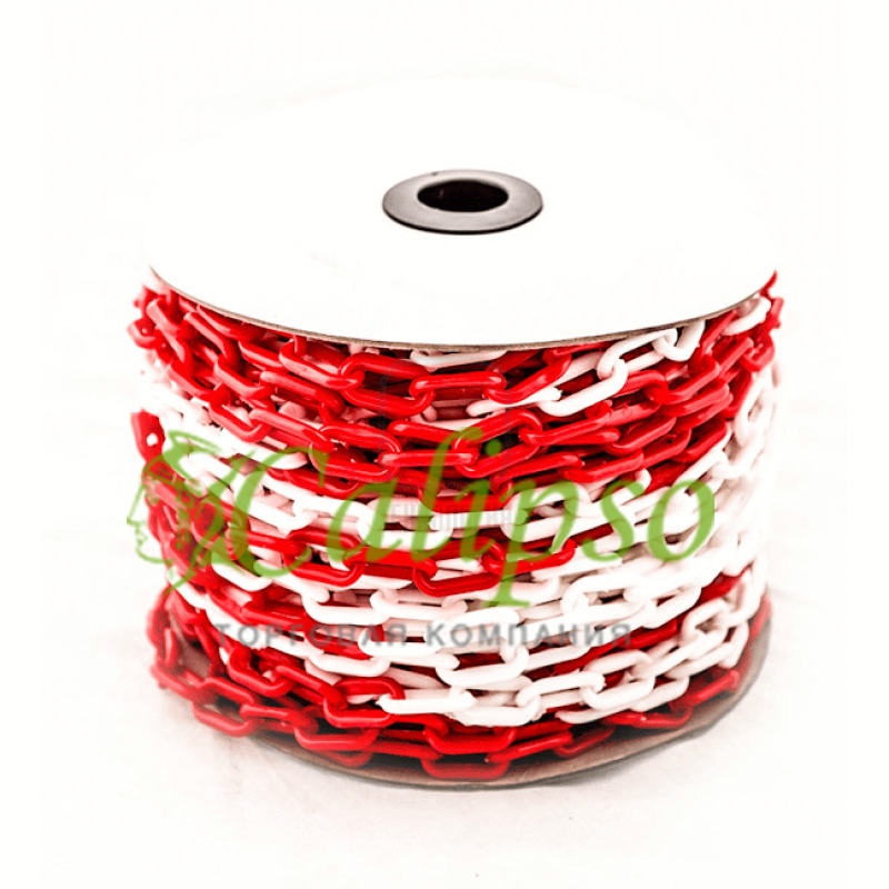 Цепь для столбиков пластиковая бело-красная, 6 мм, бухта 50 метров