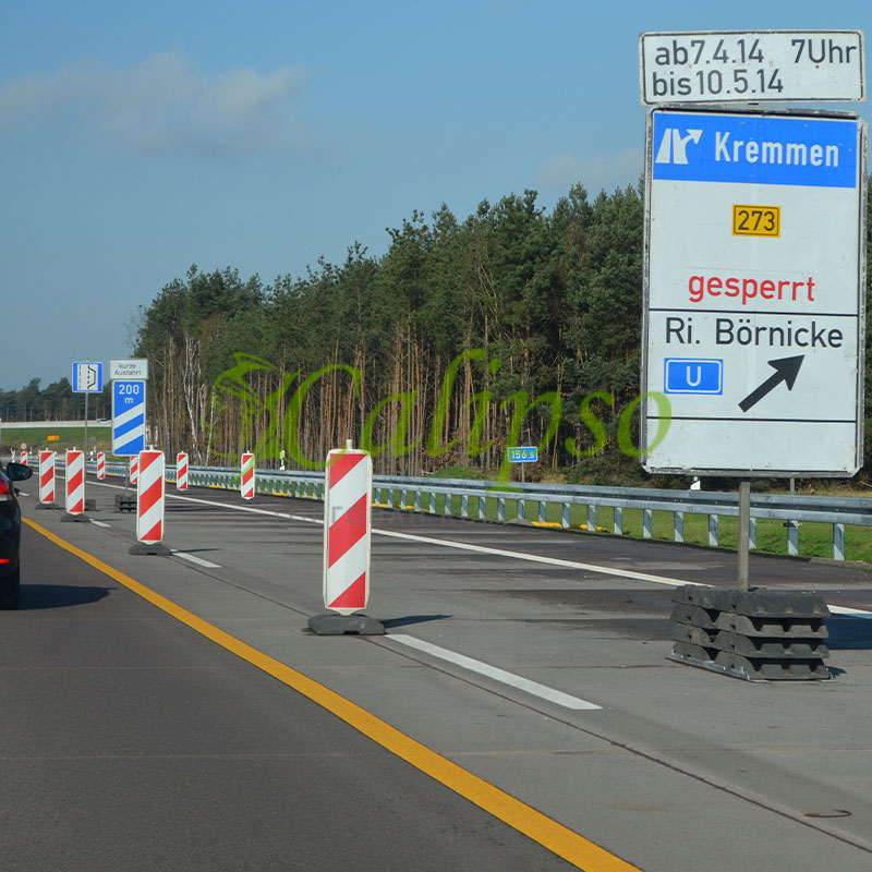 В эти подставки могут быть установлены сигнальные щитки («сержанты») с основанием 40 на 40 мм, или 60 на 60 мм, дорожные ограждения, а так же временные дорожные знаки – для этого здесь имеется округлое отверстие диаметром 50 мм.