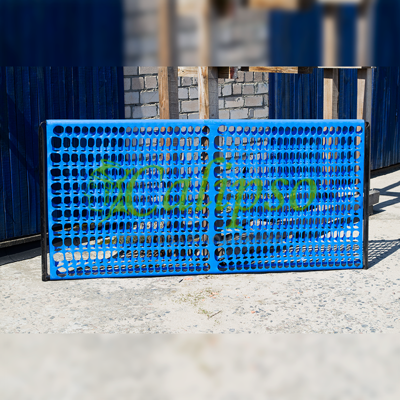 Ограждение представляет собой металлический каркас, на который натянута пластиковая сетка. Для устойчивости оснащено ножками.