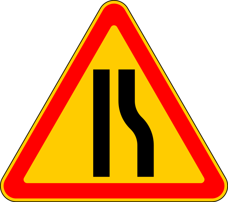 Дорожный знак 1.18.5 Сужение дороги справа (Временный)