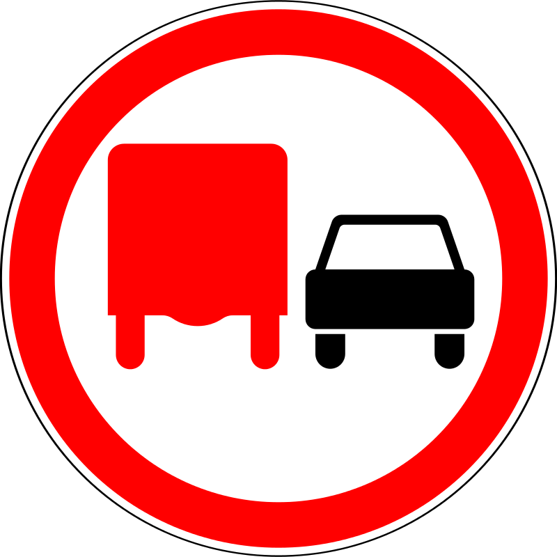 Дорожный знак 3.22 Обгон грузовым автомобилям запрещён